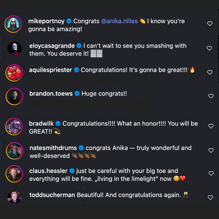 Mike Portnoy (Dream Theater): “Gratulacje @anika.nilles 👏 Wiem, że będziesz niesamowita!“