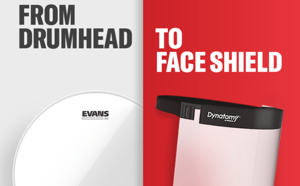 “Zespół inżynierów D’Addario’s opracował sposób na przekształcanie naciągów Evans G2 w przyłbice ochronne dla personelu medycznego walczącego z pandemią koronawirusa. Naszym celem jest rozpocząć masową produkcję do 27 kwietnia i jak najszybciej osiągnąć wydajność rzędu 100.000 sztuk tygodniowo.