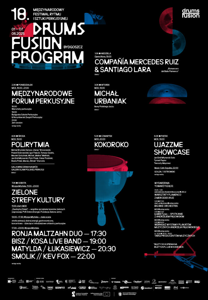 Drums Fusion to festiwal perkusyjny o wieloletniej już historii, który podczas kilkunastu edycji gościł tak wspaniałych artystów jak m.in. Urszula Dudziak, Cindy Blackman Santana, Ania Rusowicz, John H. Beck, John R. Beck, Richard Bona, Stewart Copeland, David Friedman, Benny Greb, Skip Hadden, Claus Hessler, Marcin Jahr, Manu Katché, Pete Lockett, Dave Lombardo, Bernard Maseli, Ian Paice, Jacek Pelc, Michał Urbaniak, Pat Metheny z perkusistą Joe Dysonem, Jeff Balard, UB40 feat. Ali Campbell, Fun Lovin’ Criminals, Al Di Meola, Senri Kawaguchi, czy Jonathan “Sugarfoot” Moffet.