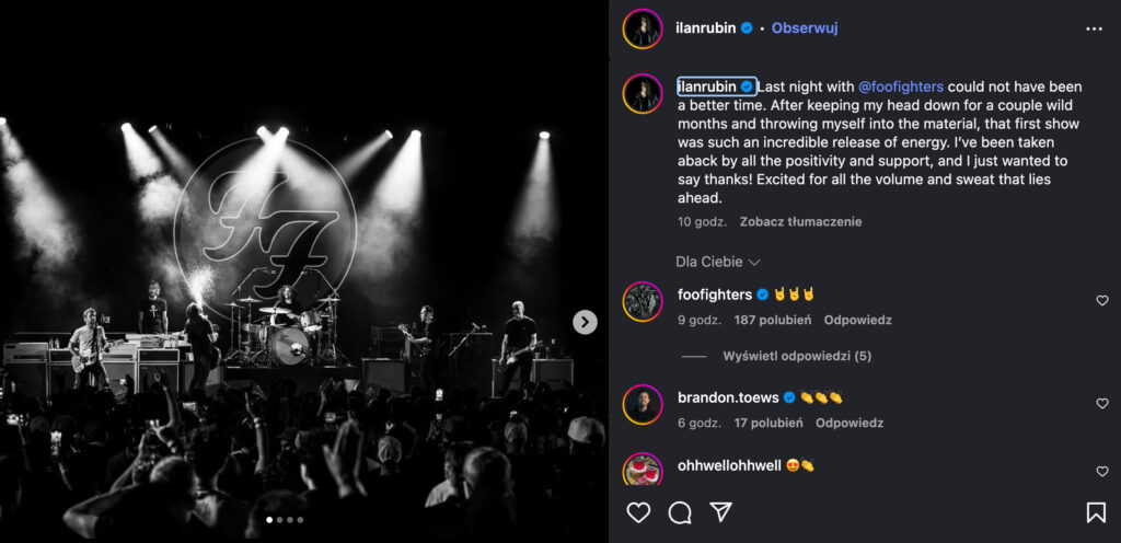 Oto fragment pierwszego występu Foo Fighters z Ilanem Rubinem, udostępniony przez kanał YouTube r/FooFighters: