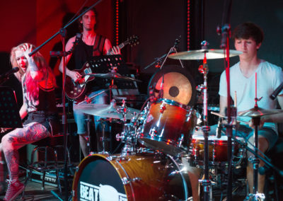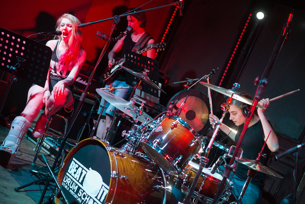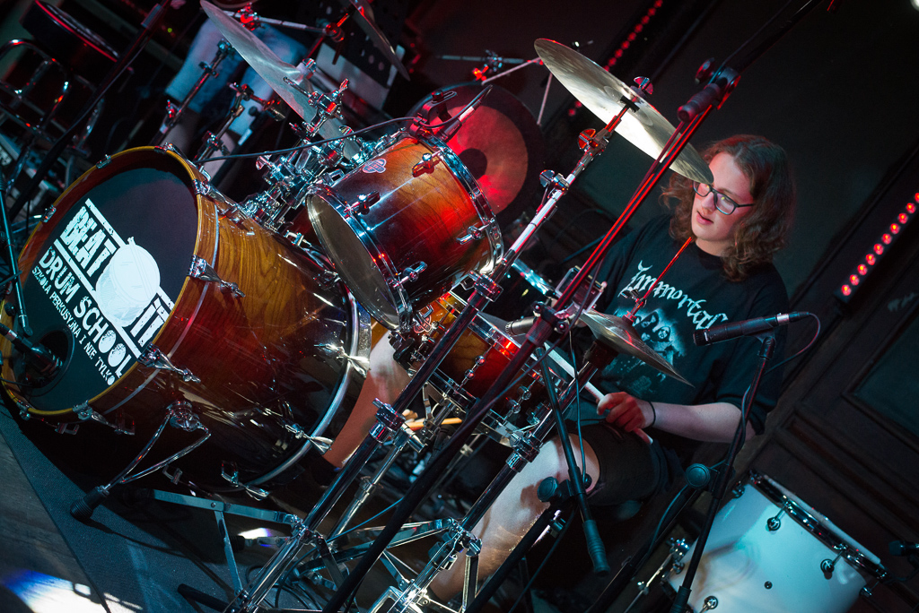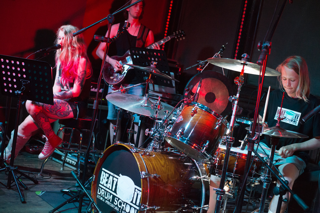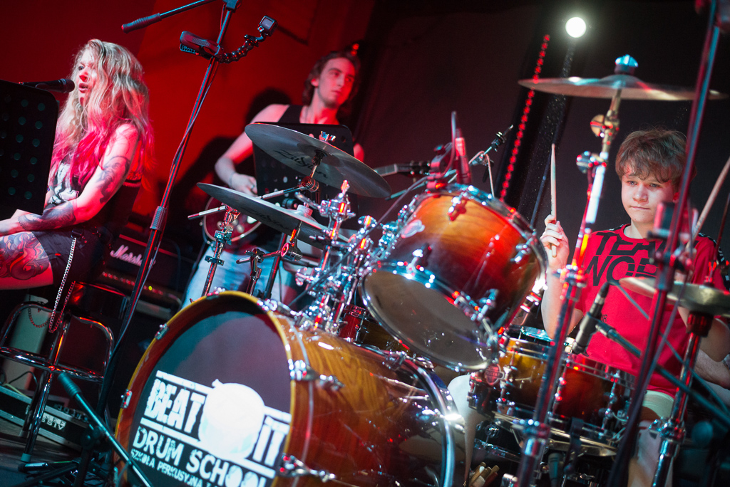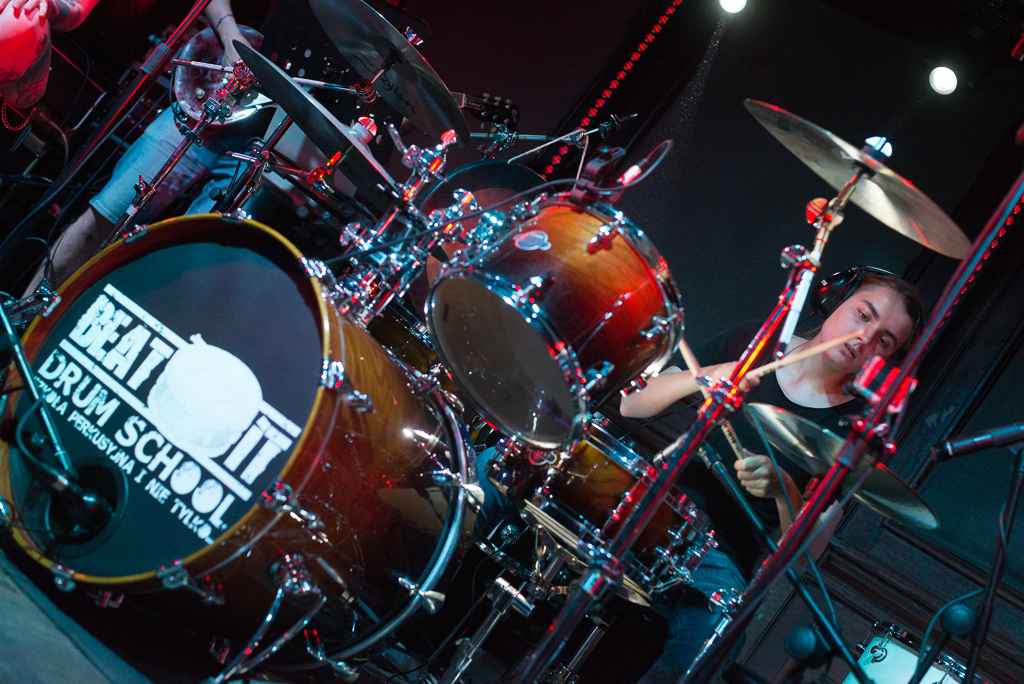 W niedzielę 09.06.2019 roku poznański klubu „Pod Minogą” podejmował naszą szkołę perkusyjną. W gorący wieczór odbył się pierwszy koncert naszych podopiecznych. Licznie zgromadzona widownia mogła wysłuchać i obejrzeć dwunastu perkusistów w bardzo zróżnicowanym programie. Należy szczególnie podkreślić fakt, że wszyscy perkusiści zagrali przy akompaniamencie zespołu, 100 % na żywo. Zysk z koncertu, który wyniósł 2240 zł, zostanie przekazany na dwa cele charytatywne:
