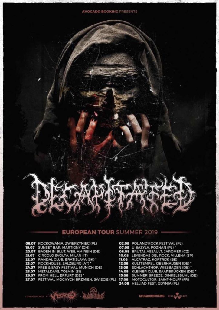 Polska machina grająca Death Metal o nazwie Decapitated dopiero zakończyła swoje wojaże po Europie, a dzisiaj ogłosiła daty swojej letniej trasy koncertowej! Muzycy odwiedzą 11 krajów i zagrają 21 koncertów. Podczas trasy będzie można usłyszeć na kilku koncertach belgijską grupa Aborted. W poznańskim klubie “U Bazyla” wraz z Decapitated zabrzmi australijski zespół Thy Art is Murder! Trasa startuje 6 lipca a zakończy się 24 sierpnia.