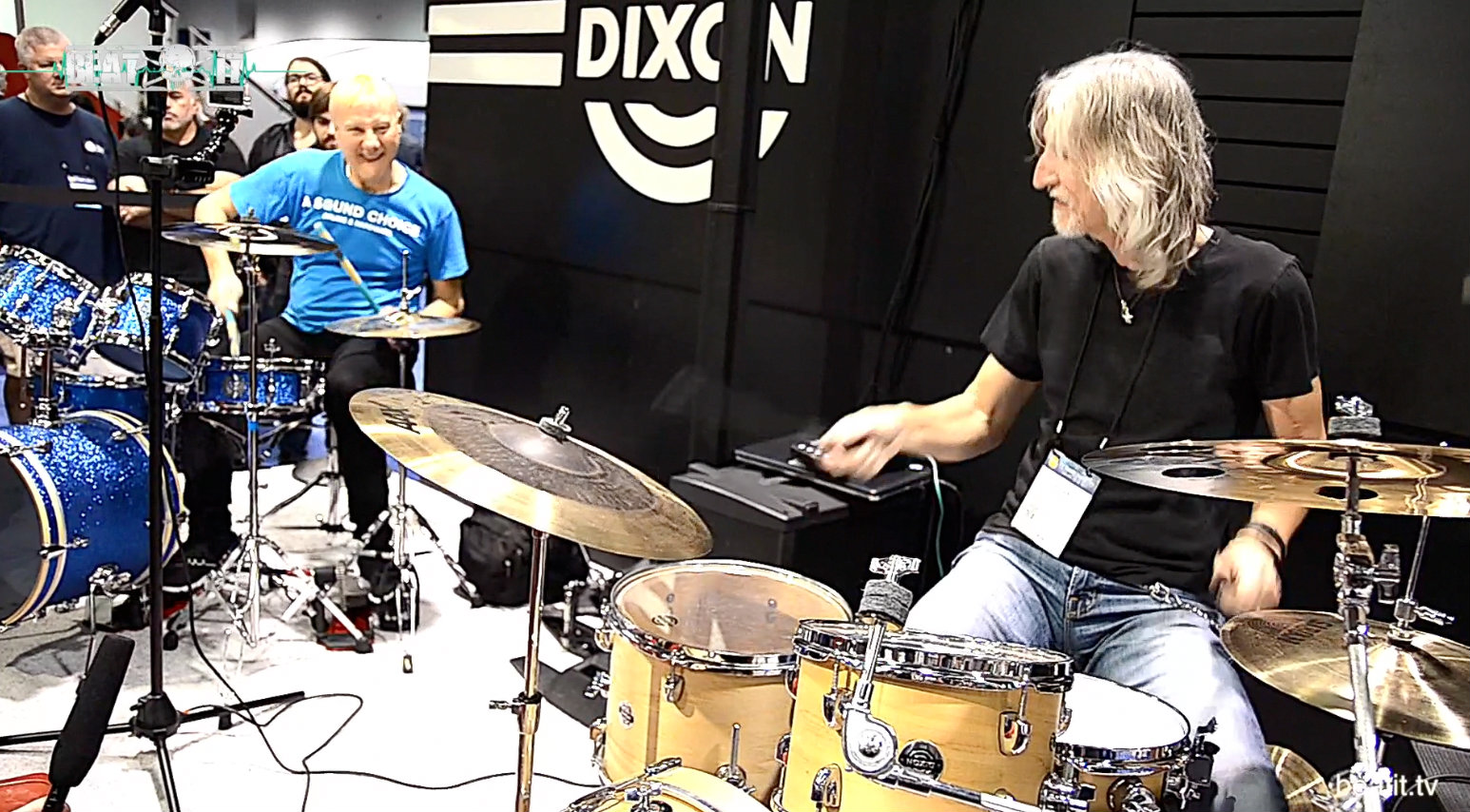 Jednym z miejsc, w których czekało na odwiedzających sporo atrakcji było stanowisko firmy DIXON. Można było tam spotkać takich mistrzów fachu perkusyjnego, jak John Mader, Gregg Bissonette czy Jerry Gaskill. Drugiego dnia targów miała miejsce tzw. signing session i każdy miał możliwość zdobyć ich autograf, chwilę porozmawiać, przybić piątkę, zrobić sobie zdjęcie. Natomiast w sobotę 21 stycznia byliśmy świadkami występu panów Bissonette i Gaskilla, którego całość oczywiście dla Was zarejestrowaliśmy. Właśnie w tej chwili możecie przekonać się na własne oczy i uszy, jak najpoważniejsi perkusiści naszych czasów potrafią zagrać muzykę mając do dyspozycji wyłącznie dwa zestawy perkusyjne. No dobrze, jeszcze do tego sporo talentu i osobowości.