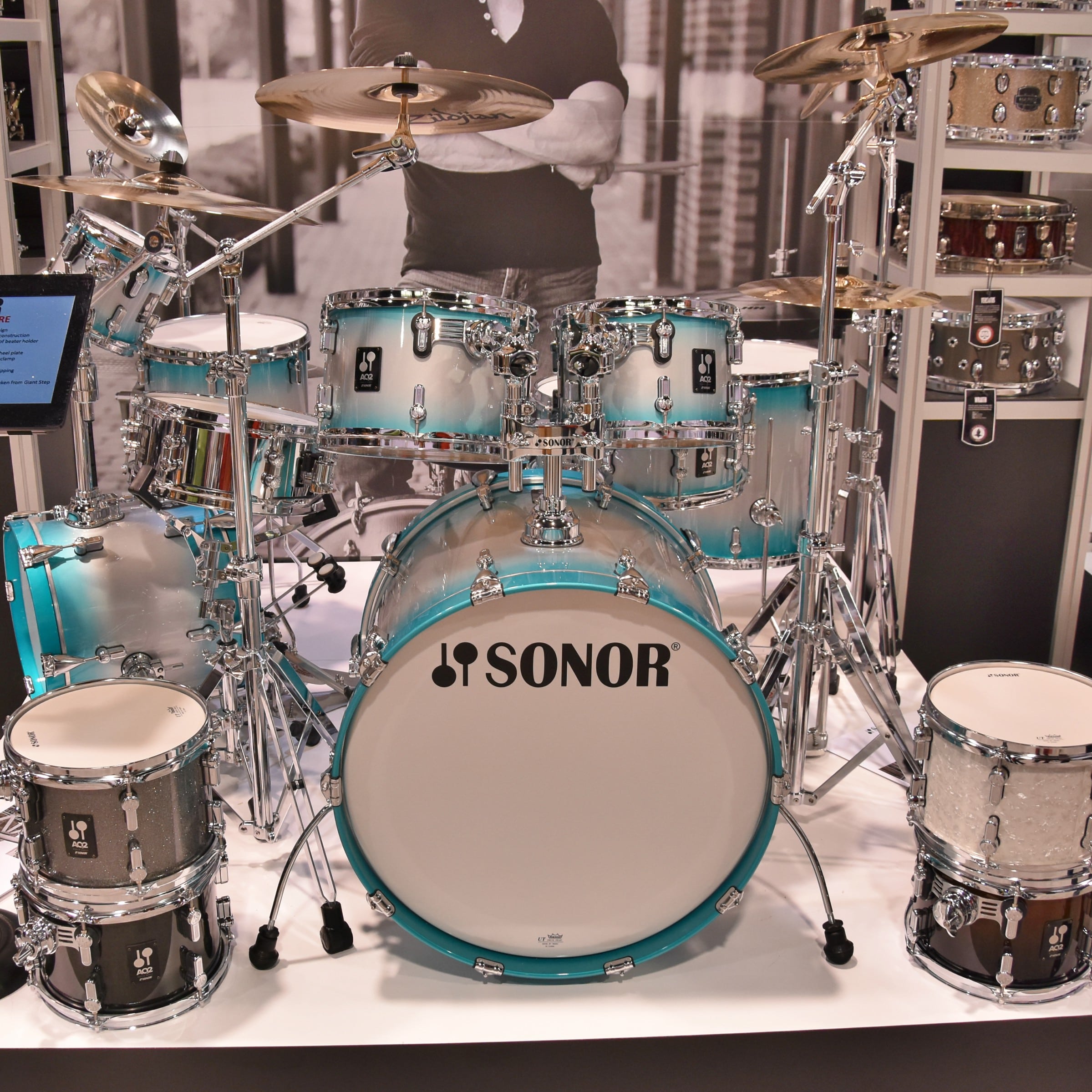 Tym razem zapraszamy na wycieczkę po stoisku firmy Sonor, na którym Waszym przewodnikiem jest Karl-Heinz Menzel. Zobaczcie zestawy AQ2, SQ1 oraz nową aplikację do konfiguracji kultowych zestawów SQ2, jak również sygnowane werble.