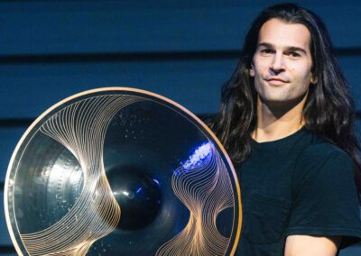 “Chciałem zilustrować coś, co wizualnie przedstawiałoby, jak to jest być w środku prawdziwego stanu flow. To uczucie intensywnego skupienia i bezwysiłkowego działania. Biorąc pod uwagę wyjątkową okazję dodania niestandardowego elementu wizualnego do zestawu, chciałem, aby służył on jako przypomnienie, jaki jest cel podczas grania na żywo, a także działał jako Gwiazda Północna, na której mogę się skupić, gdy jestem w trakcie ćwiczenia czegoś wymagającego.” – Aric Improta