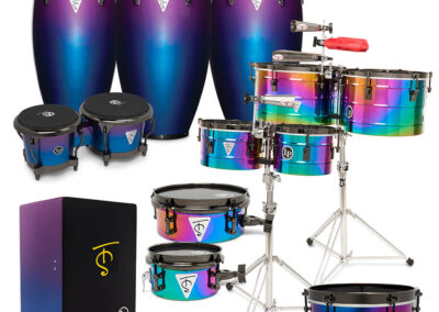 • w zestawie: konga, bongosy, timbalesy, timbalitos, werbel, mikro werbel (2 szt.), cajon