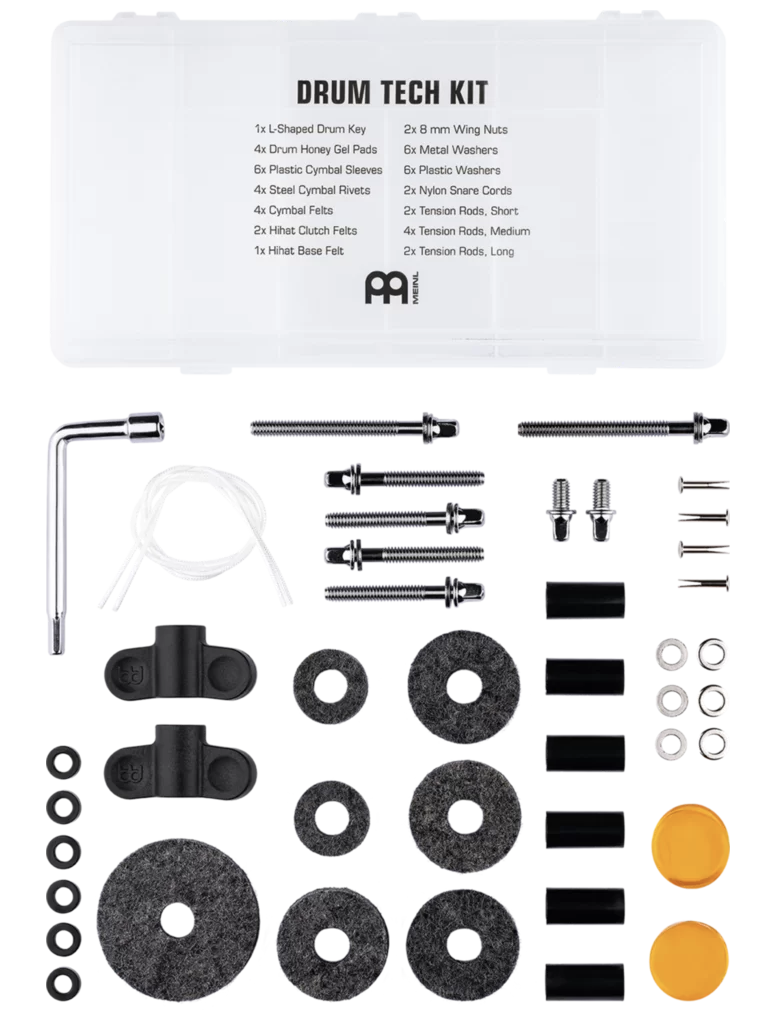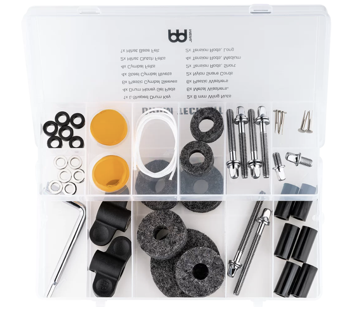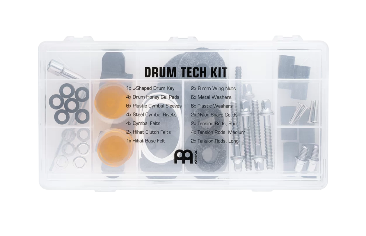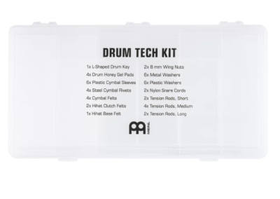 Kolejną nowością jest zestaw Drum Tech Kit. Firma Meinl przygotowała zestaw, który poratuje perkusistę w sytuacjach awaryjnych, rutynowej konserwacji, renowacji czy wymianie utraconych części. Zestaw zawiera: