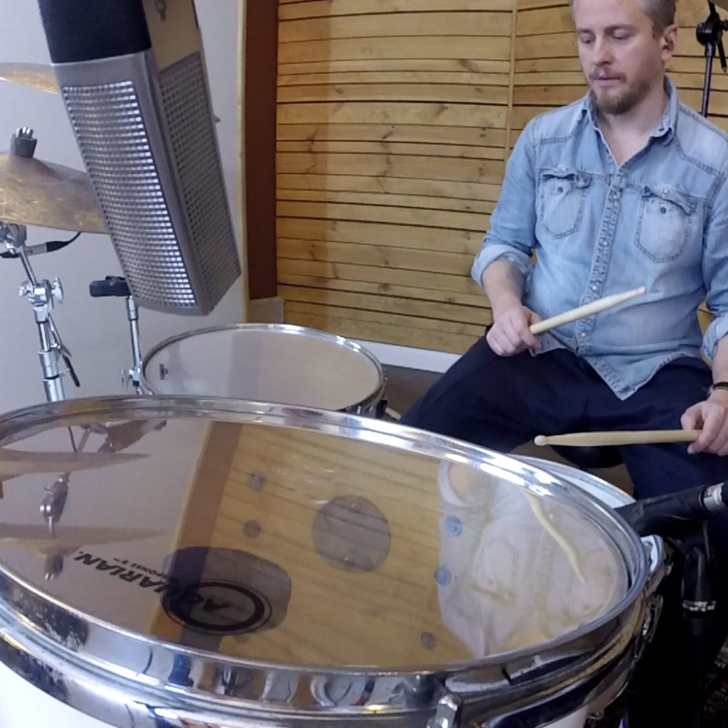 Test przeprowadziliśmy w studio CLC w Piasecznie, w pomieszczeniu przystosowanym akustycznie. Wykorzystaliśmy zestaw perkusyjny Ludwig (Radek sam nie pamięta jaki to dokładnie model) oraz werbel Ludwig Supraphonic LM402. Naciąg uderzany na werblu to Aquarian Response 2 Coated, a rezonansowy to Aquarian Classic Clear.