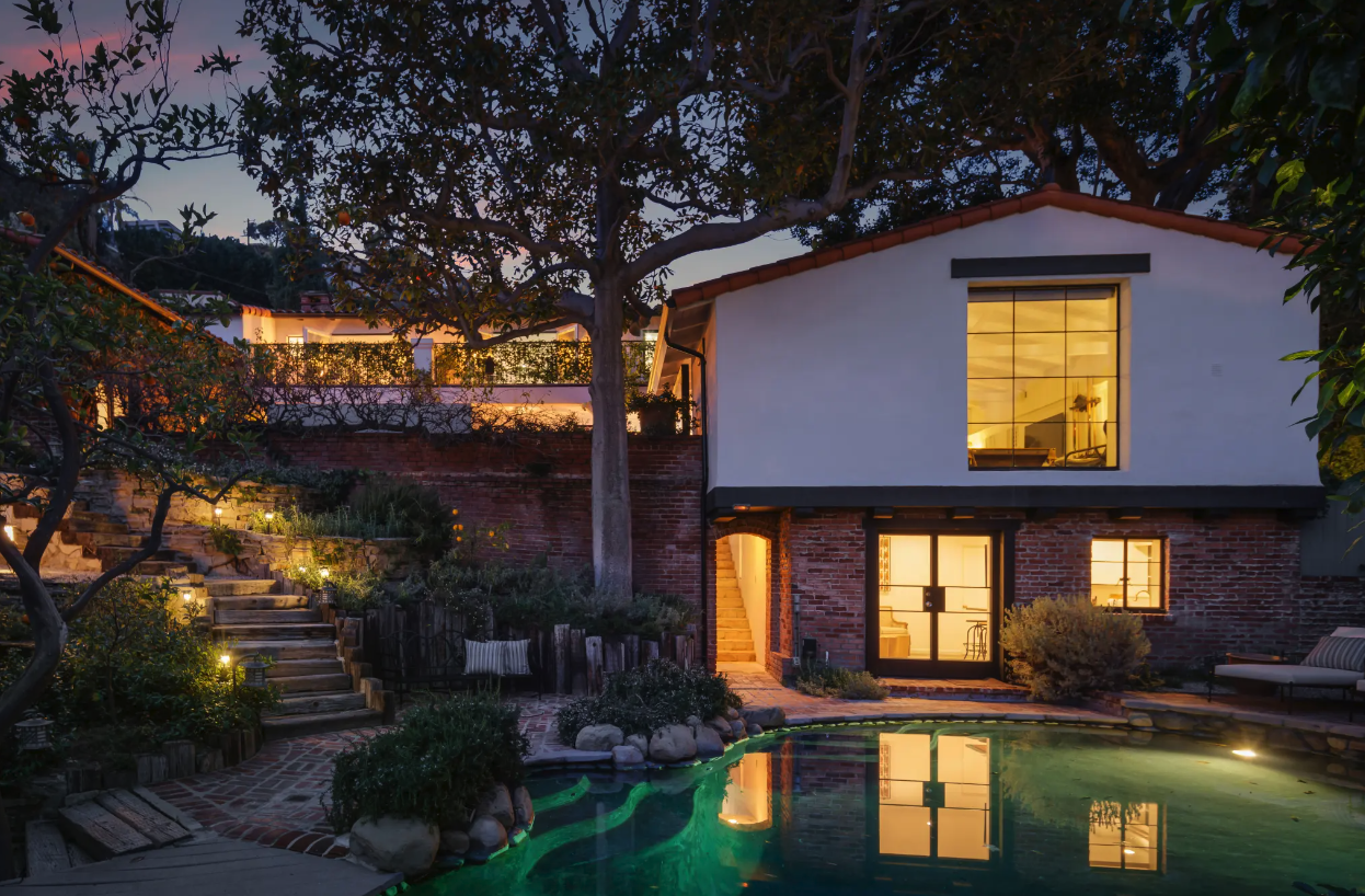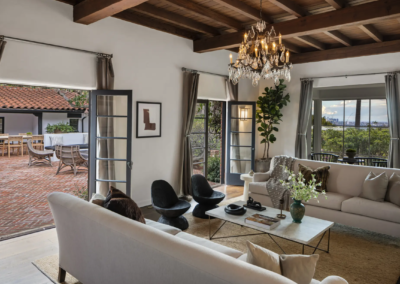 Główne, ogólnodostępne pomieszczenia wychodzą na ceglane patio z miejscem na ognisko, jadalnią na świeżym powietrzu i widokiem na miasto.
