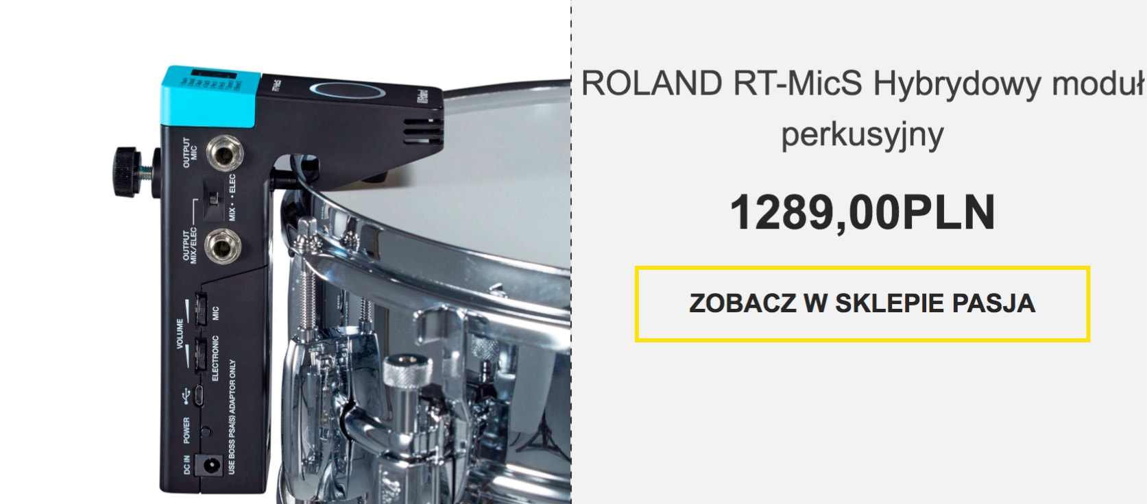 Spieszymy Wam donieść, że w sklepie muzycznym Pasja jest już dostępny moduł perkusyjny Roland RT-MicS.