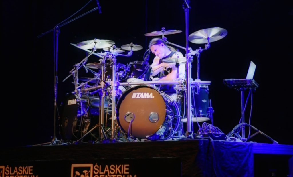 Wojtek rozpoczął swój występ od zagrania dwóch utworów artystki Rosalie, następnie przedstawił swoją koncepcję grania z podkładami, aranżowania przykładowego groove’u oraz sposobów ćwiczenia. Perkusista miał bardzo dobry kontakt z publicznością, odpowiadał na liczne pytania i przekazywał bardzo wartościowe wskazówki dla licznie zgromadzonych perkusistów. Swój występ zakończył rozbudowanym solo perkusyjnym. Uważamy, że występ Wojtka był bardzo udany, zwłaszcza, że był to jego pierwszy występ na tak dużej imprezie perkusyjnej.