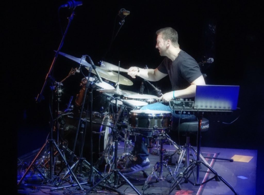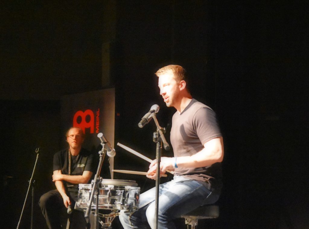 Niekwestionowana gwiazda wieczoru. Mike Johnston dokładnie wie, jak prowadzić i realizować show z perkusją w roli głównej. Oprócz zagrania kilku perkusyjnych wykonań Mike nawiązał rewelacyjny kontakt z publicznością. Poruszył bardzo ciekawy temat zwrócenia uwagi na sposób ćwiczenia prostych wprawek perkusyjnych na przykładzie akcentowania podwójnych uderzeń w naliczaniu na 2, 3, 4, 5, 6 i 7 oraz orkiestrację tego ćwiczenia na zestawie perkusyjnym. Było też trochę moralizatorsko w temacie ‘ile daję od siebie, a ile biorę od innych‘. Świetny występ. Mike obiecał, że za rok pojawi się znowu w naszym kraju. W jakiej roli? O tym powiadomimy niebawem.