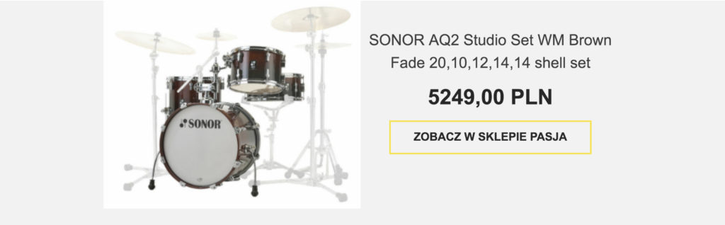 Sonor AQ2 to zestaw dla średnio zaawansowanychi profesjonalnych perkusistów. Wersja Studio to 20″ bęben basowy, dwa tomy 10″ i 12″ oraz jeden floor tom 14″. W skład zestawu wchodzi również 14″ drewniany werbel. Korpusy bębnów wykonane w 100% klonu.7-warstwowe korpusy z klonu (4 warstwy klonu kanadyjskiego, 3 warstwy klonu chińskiego) dają bezkompromisowy, bogaty i ciepły dźwięk oraz niskie tony, a także równowagę między średnimi a wysokimi dźwiękami. W korpusach zastosowano nowy rodzaj mocowania tomów – Smart Mount. Patent ten pozwala na maksymalne ograniczenie kontaktu drewnianych korpusów z metalowymi elementami. Czy w studiu czy na scenie, AQ2 dostarcza za każdym razem arcymocnych doznań.
