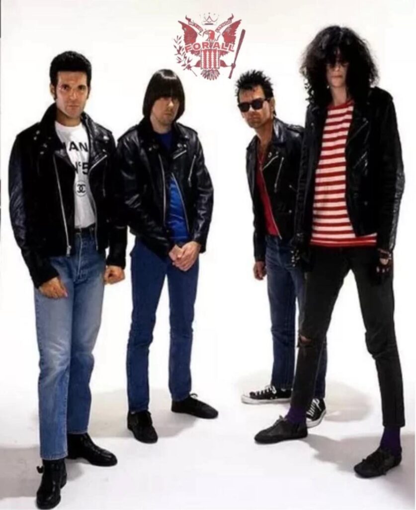 Clem Burke z The Ramones w 1987 r. (od lewej: C. Burke aka Elvis Ramone, Johnny Ramone, Dee Dee Ramone, Joey Ramone, zdjęcie: George DuBose)