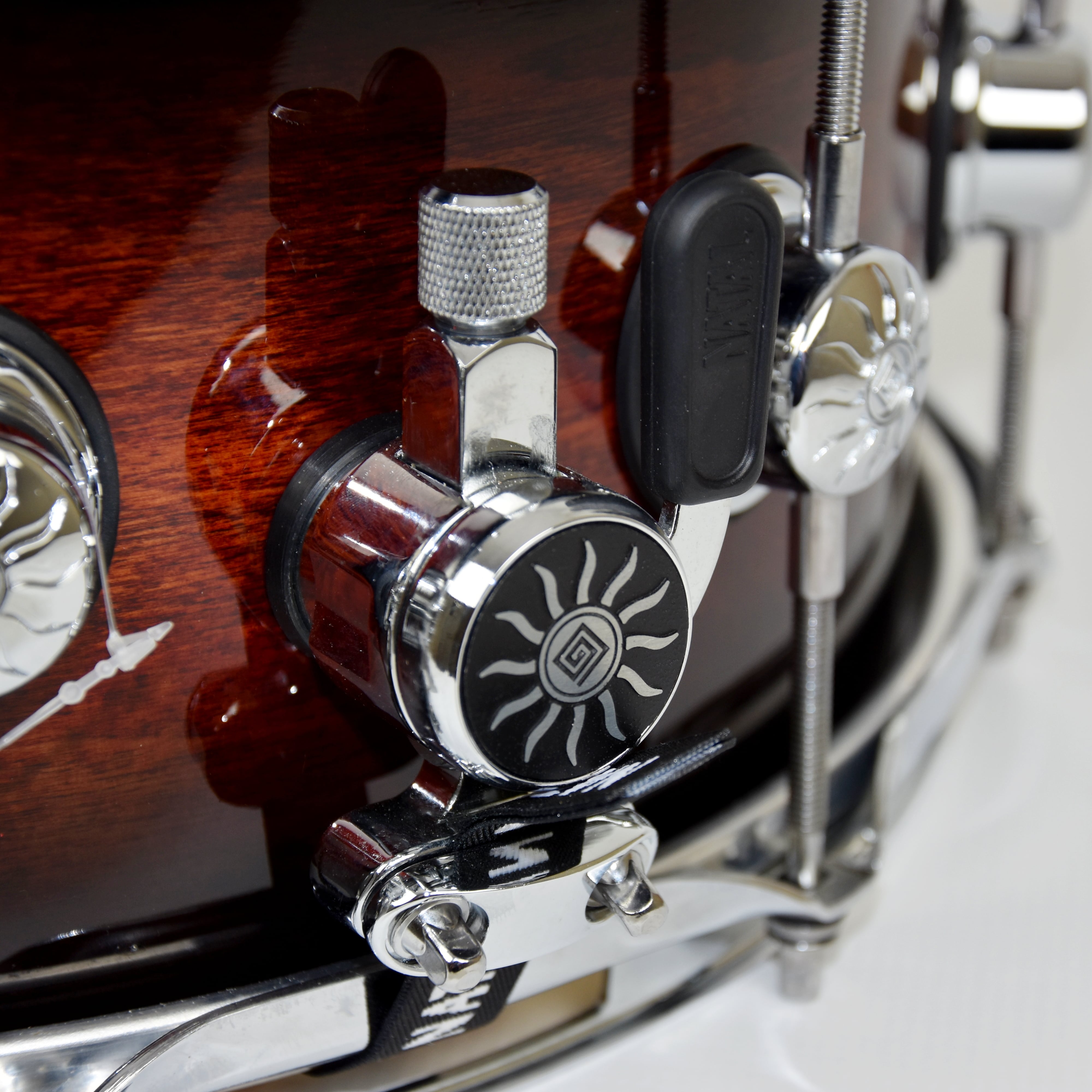 Werbel przybył do nas w kartonie z dużym logo producenta. W środku oprócz bębna znajdowały się styropianowe zabezpieczenia i mniejszy karton ochronny na górnym naciągu. Podczas typowego transportu nie ma obawy o uszkodzenie instrumentu. Po wyjęciu werbla z opakowania ujrzeliśmy małe dzieło sztuki! Ciemny, podpalany lakier który podkreśla strukturę drewna robi ogromne wrażenie. Do całości dodajmy chromowane, świetnie dopasowane lugi typu Sun Lugs i mamy gotowy przepis na piękno, które świetnie brzmi!