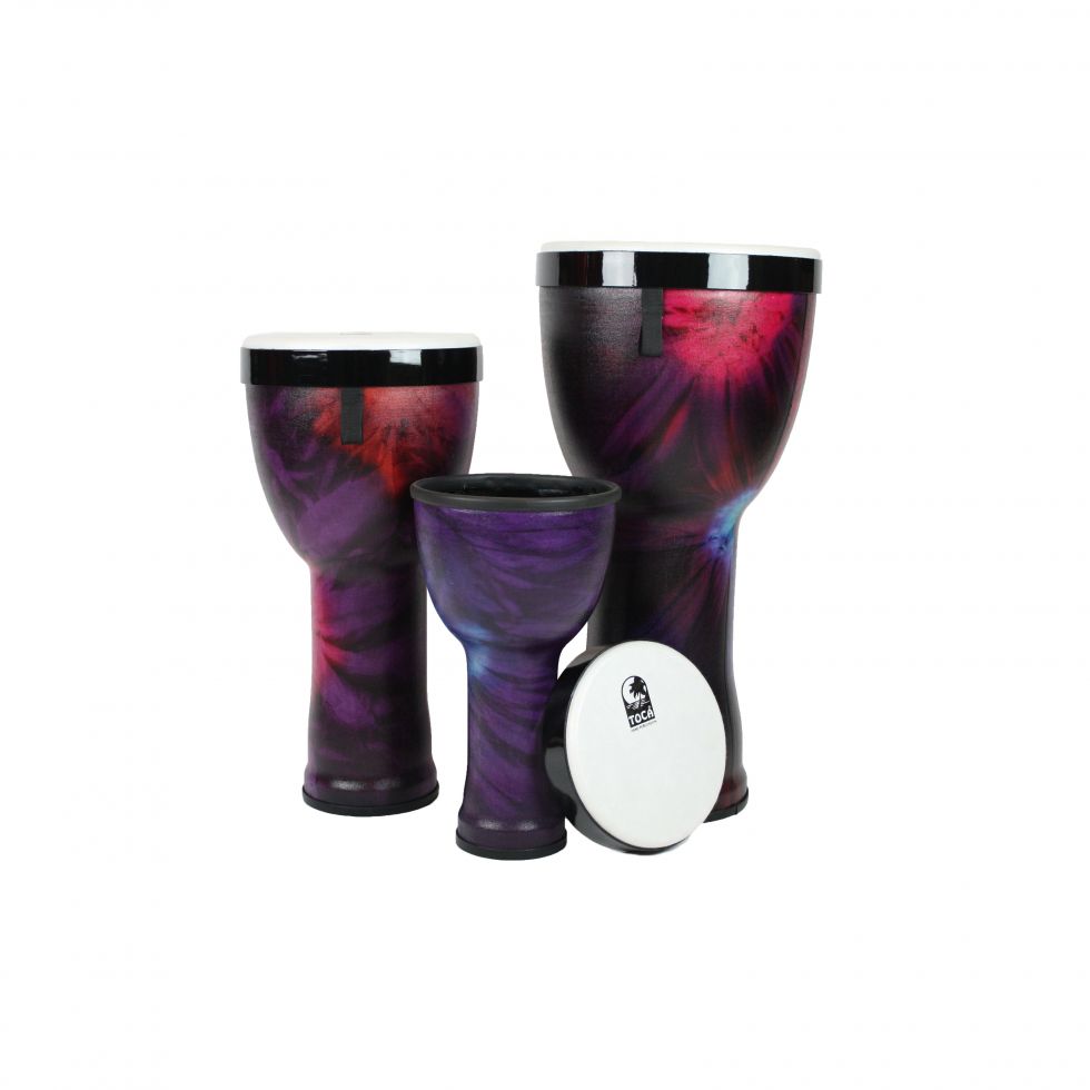 Djembe Toca to wyjątkowe bębny z tworzywa PCV, podobne do starszego modelu Freestyle. Wzbogacone zostały o jedną dodatkową funkcję: wytrzymałe, syntetyczne naciągi mogą być zdjęte i wykorzystane jako bęben ramowy! Bębny można układać jeden w drugi, co czyni je idealnymi do przechowywania i podróży! Dostępne są w kosmicznym wykończeniu Woodstock Purple. Bębny dostępne są w rozmiarach 8 “, 10” i 12 “, sprzedawane pojedynczo lub w zestawie trzech sztuk.