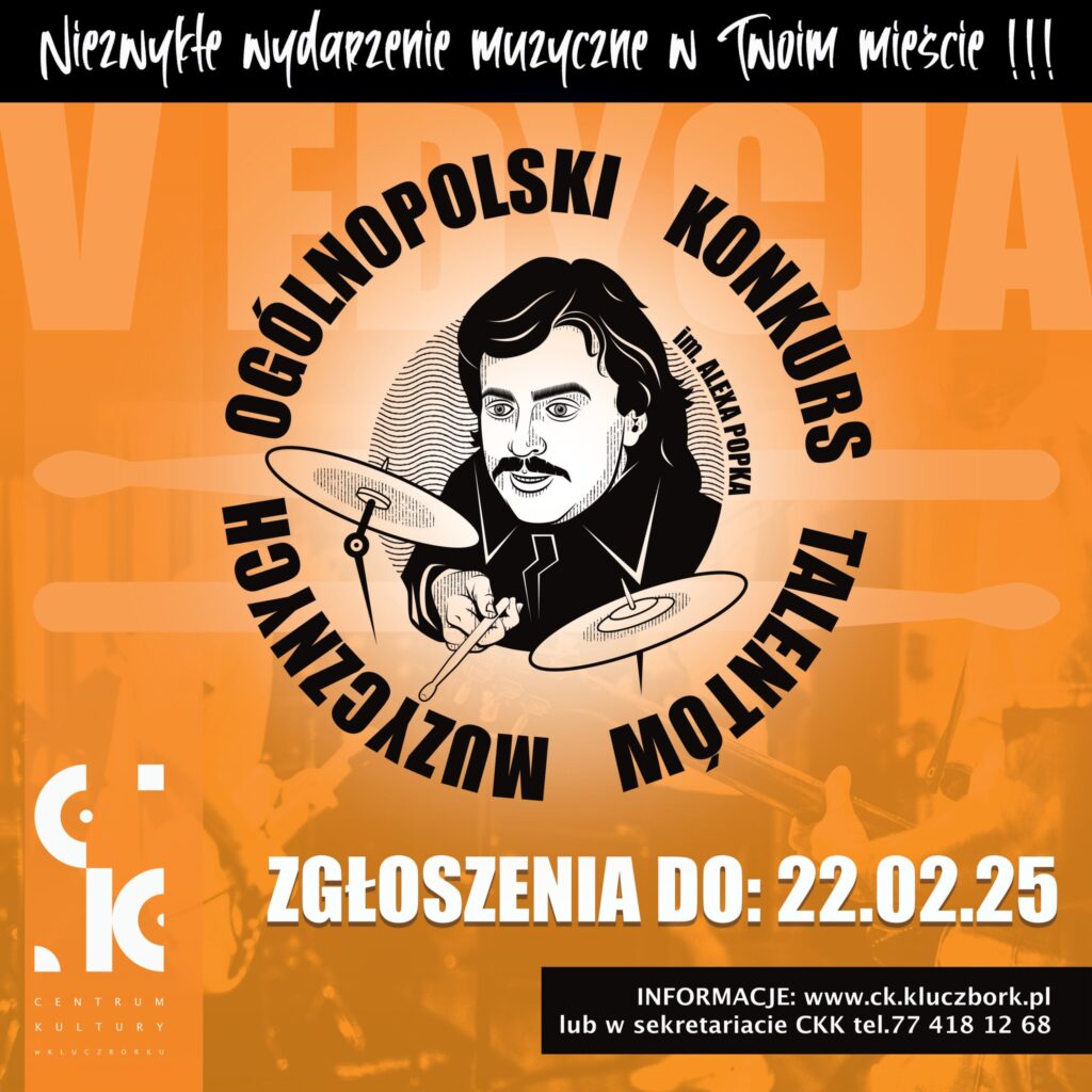 Centrum Kultury w Kluczborku zaprasza do udziału w V Edycji Ogólnopolskiego Konkursu Talentów Muzycznych im. Alexa Popka. Finał tej imprezy odbędzie się 22 marca 2025 r.