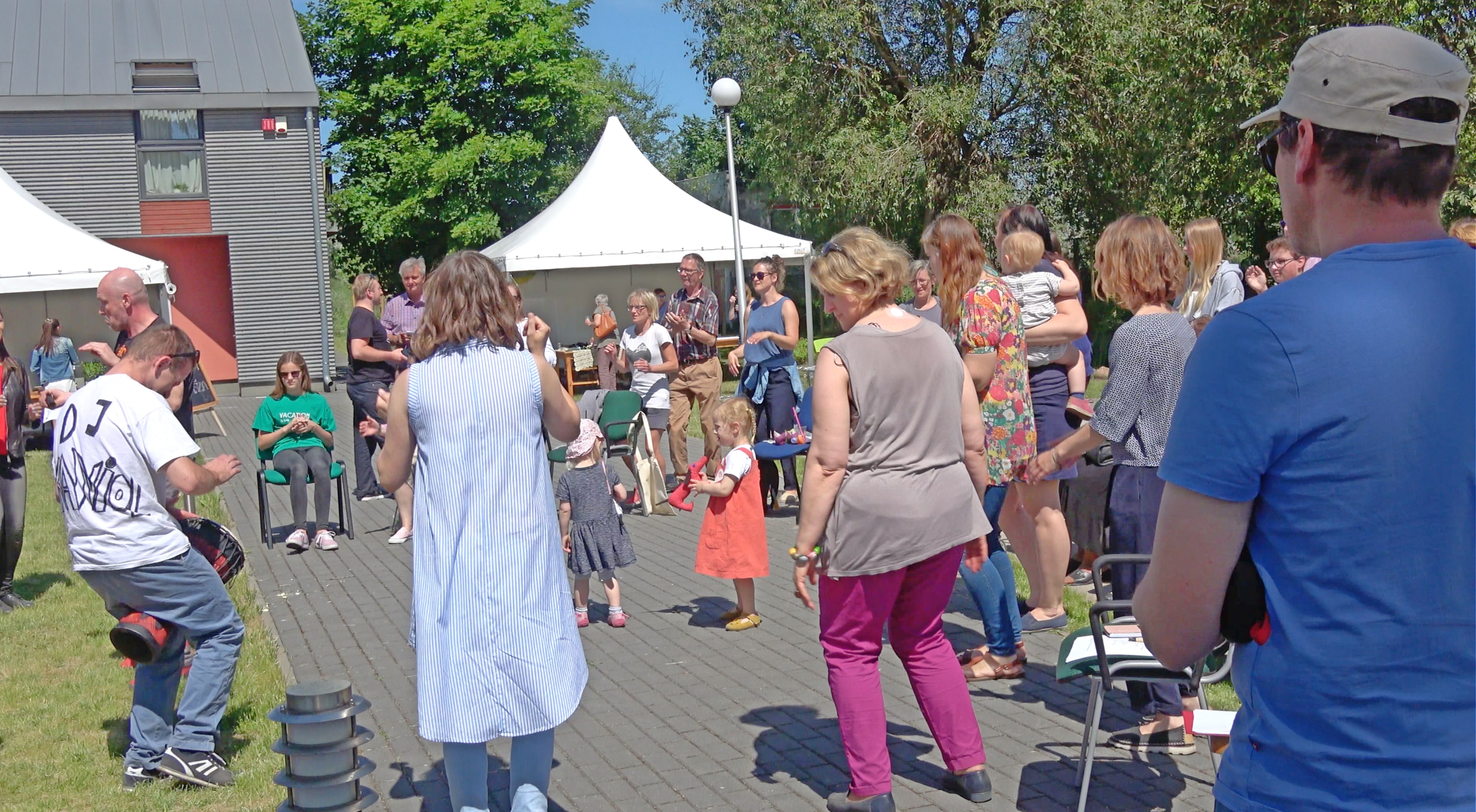 Szaleństwo perkusyjne ogarnęło wszystkich, bez względu na wiek, płeć, czy stan zdrowia. Prowadzenie takich zajęć to sama przyjemność. W ich trakcie przygotowaliśmy się między innymi do wspólnego wykonania podkładu rytmicznego do numeru “We Will Rock You” zespołu Queen. Samo wykonanie również możecie obejrzeć pod koniec relacji. Wszystkim zgromadzonym, i jednocześnie współwykonującym, podobało się do tego stopnia, że trzeba było bisować. Wspólne wystukiwanie i wytupywanie rytmu okazało się wielką frajdą…