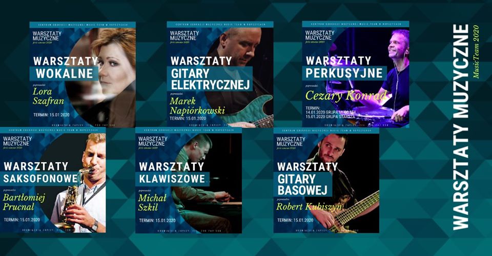 W przyszłym tygodniu, w dniach 14 – 15 stycznia 2020 r., będą miały miejsce warsztaty instrumentalno-wokalne MusicTeam 2020, których organizatorem jest Centrum Edukacji Muzycznej MusicTeam w Ropczycach. W ramach tej imprezy warsztaty perkusyjne poprowadzi jeden z najwybitniejszych instrumentalistów w naszym kraju – Cezary Konrad. Odbędzie się to w Centrum Kultury im. Józefa Mehoffera w Ropczycach. 14 stycznia o godz. 10.00 rozpoczną się zajęcia z grupą młodszą (do 15 lat), a 15 stycznia o tej samej godzinie Czarek spotka się z grupą starszą.