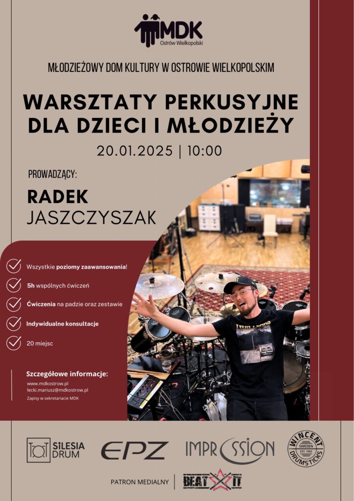 Z przyjemnością objęliśmy patronat medialny nad tą imprezą i polecamy wzięcie w niej udziału! Pozostali partnerzy to: EPZ, Wincent Drumsticks, Impression Cymbals, Silesia Drum.